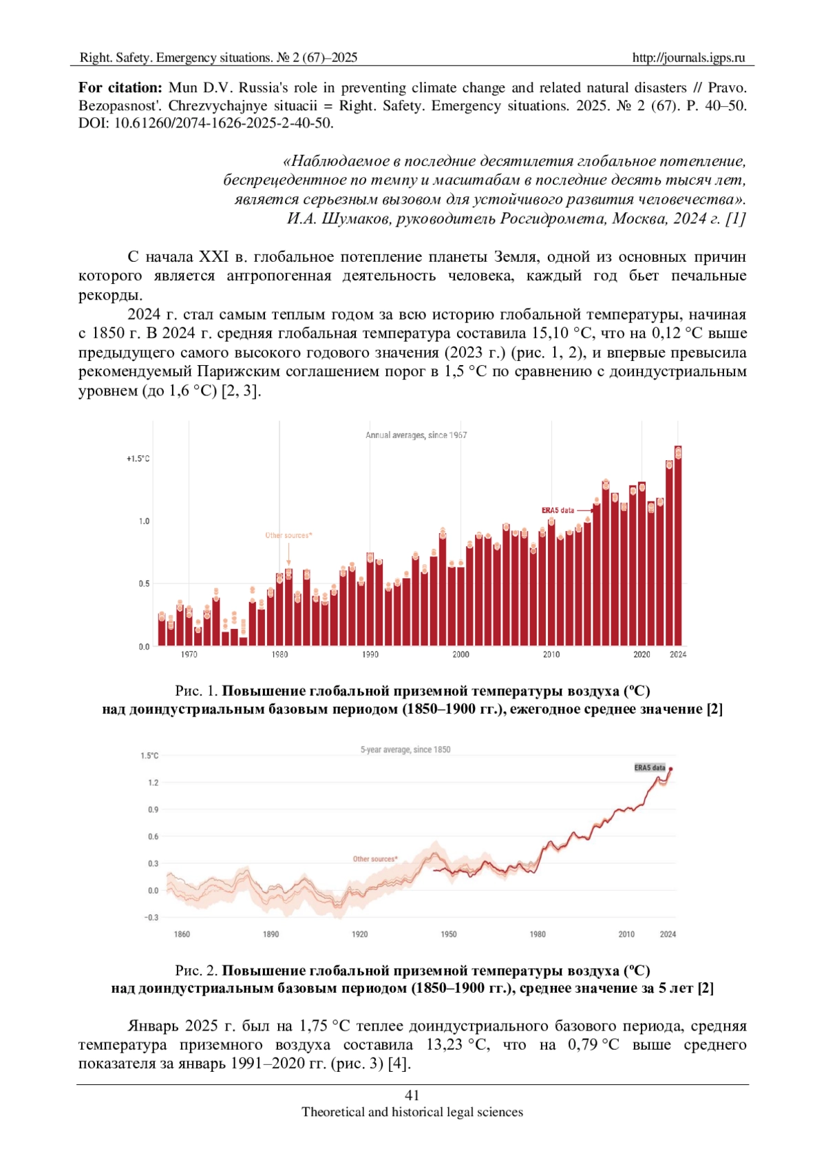 8. Мун Д.В., Попета В.В., Мингалеев С.Г. Климатические изменения: Россия в зоне повышенного риска // Экономика, предпринимательство и право. 2022. Т. 12. № 10. С. 2895-2914. DOI: 10.18334/epp.12.10.116575 EDN: VNXKCE