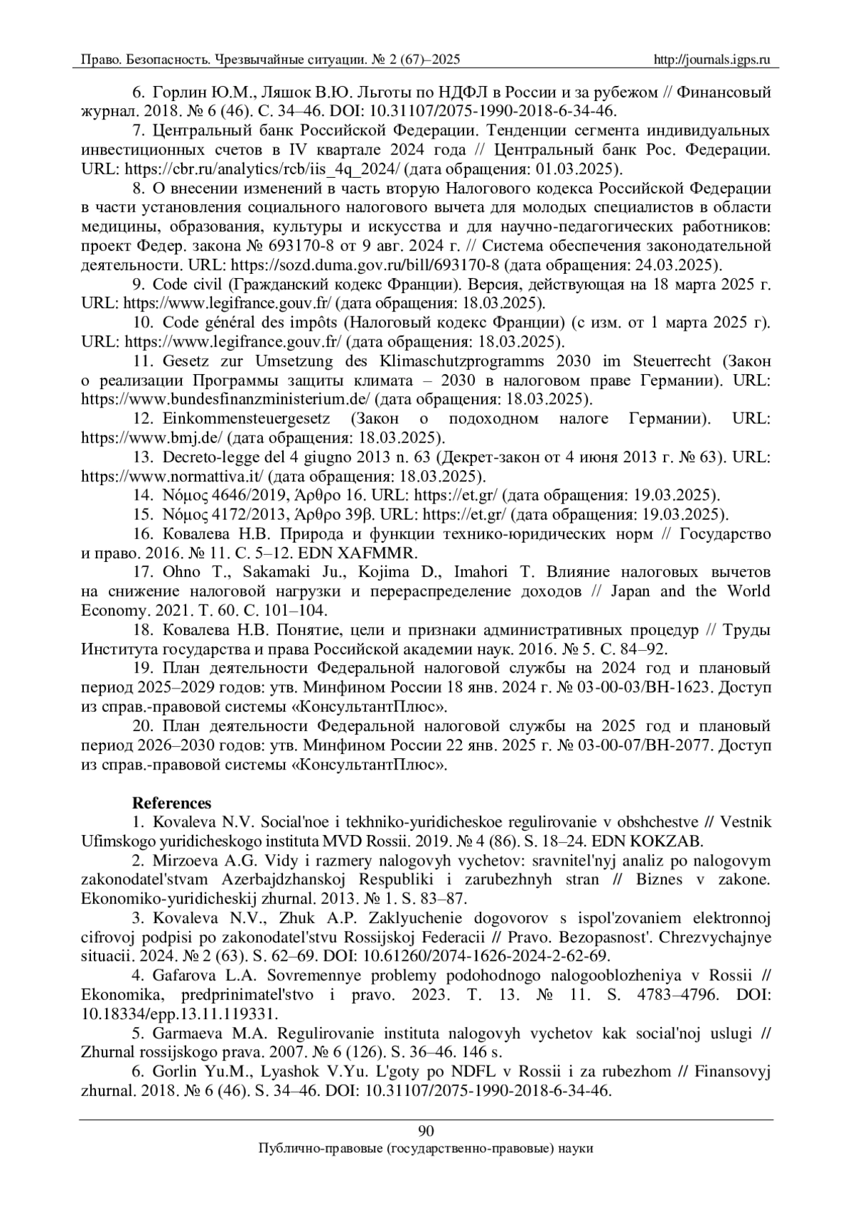 17. Ohno T., Sakamaki Ju., Kojima D., Imahori T. Влияние налоговых вычетов на снижение налоговой нагрузки и перераспределение доходов // Japan and the World Economy. 2021. Т. 60. С. 101-104.