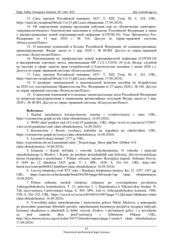 14. Об определении порядка продления действия мер по обеспечению санитарно-эпидемиологического благополучия населения в субъектах Российской Федерации в связи с распространением новой коронавирусной инфекции (COVID-19): Указ Президента Рос. Федерации от 11 мая 2020 г. № 316. Доступ из справ.-правовой системы “КонсультантПлюс”.