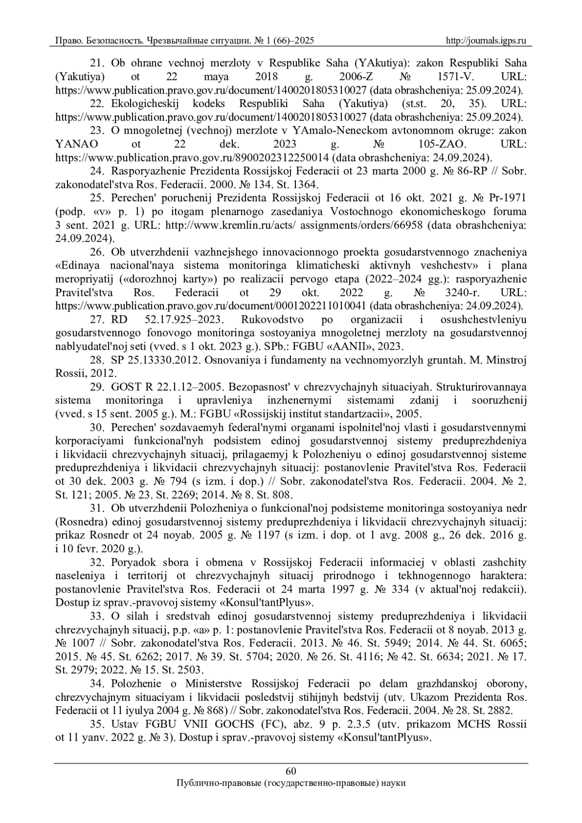 1. ГОСТ 22.1.02-2023. Безопасность в чрезвычайных ситуациях. Мониторинг и прогнозирование. Термины и определения (п. 13 разд. 2) // ЭЛЕКТРОННЫЙ ФОНД правовой и нормативно-технической документации. URL: http://www.docs.cntd.ru (дата обращения: 21.12.2024).