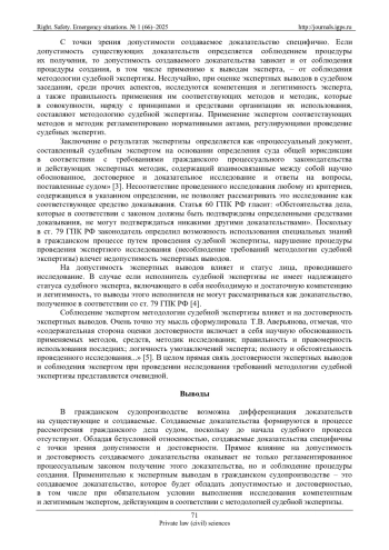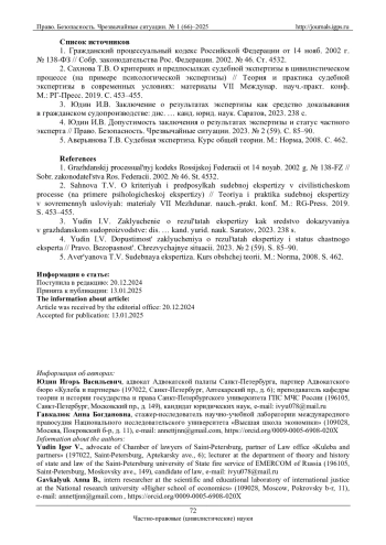 4. Юдин И.В. Допустимость заключения о результатах экспертизы и статус частного эксперта // Право. Безопасность. Чрезвычайные ситуации. 2023. № 2 (59). С. 85-90. EDN: LRIIAN