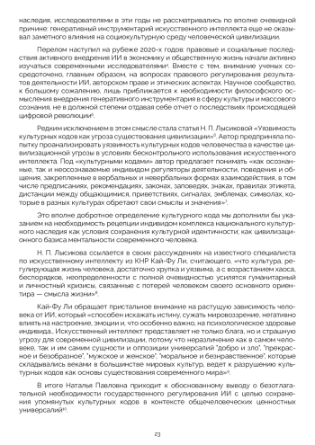 17. Лысикова Н. П. Уязвимость культурных кодов как угроза существования цивилизации // Изв. Сарат. унта. Нов. сер. Сер. Социология. Политология. 2023. №4. С. 412 -416. - URL: https://cyberleninka.ru/article/n/uyazvimostkulturnyhkodovkakugrozasuschestvovaniyatsivilizatsii (дата обращения: 10.11.2024). EDN: FXVLFZ