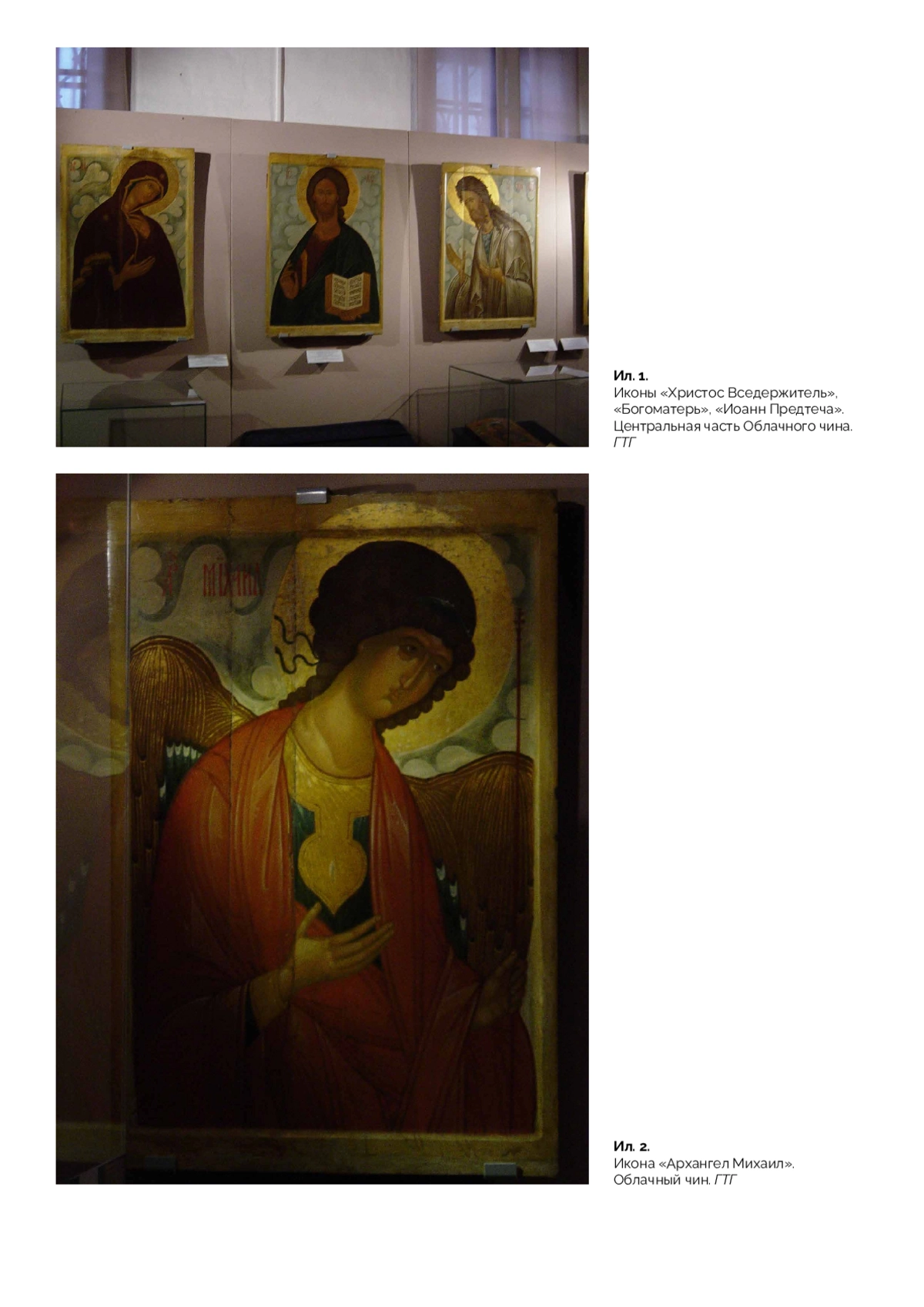 В статье рассматривается одна из древнейших икон собрания Русского музея «Собор архангелов Михаила и Гавриила». Образ был обнаружен в Архангельском храме одноименного монастыря Великого Устюга, откуда в 1931 г. поступил в Велико-Устюгский краеведческий музей. В 1959 – 1968 гг. икона была раскрыта из-под записей художником-реставратором А. Н. Барановой в Центральных государственных реставрационных мастерских (Москва), а затем передана в Русский музей. Основное внимание в статье уделяется итогам реставрации, кардинально изменившей внешний облик иконы и позволившей поставить вопрос о времени и месте ее создания. Приводятся данные реставрационного паспорта, составленного А. Н. Барановой, и мнения исследователей, анализировавших изображения на иконе в процессе ее раскрытия. Для решения вопроса о происхождении иконы привлекаются данные из Сотной книги Великого Устюга 1630 г., согласно которой икона находилась в церкви во имя Введения Богородицы во храм Михаило-Архангельского монастыря. Анализ текста Сотной книги приводит к выводу о почитании образа в Устюге. Согласно источнику, икона имела драгоценный убор с венцом, ожерельем и гривной, украшенными камнями и жемчугом. Эти сведения подтверждаются результатами исследования иконы под микроскопом и рентгенографированием поверхности. Обзор существующей литературы и результаты исследования иконы позволяют вернуться к вопросу о месте ее создания. В свете проведенных работ наиболее обоснованным представляется мнение Г. И. Вздорнова, высказанное еще в 1970-е годы, о создании иконы в Великом Устюге. В то же время широкую датировку, предложенную Вздорновым, следует сузить до последней четверти XIII века.