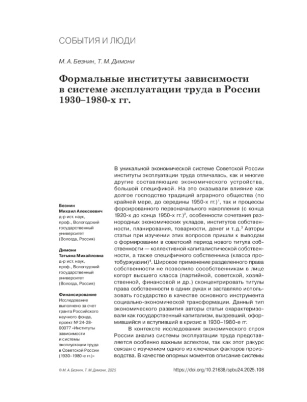 19. Безнин М. А., Димони Т. М. Становление новых властно-собственнических отношений в Cоветской России конца 1920-х - начала 1950-х гг. // Вопросы истории. 2022. № 10 (1). С. 4-19.