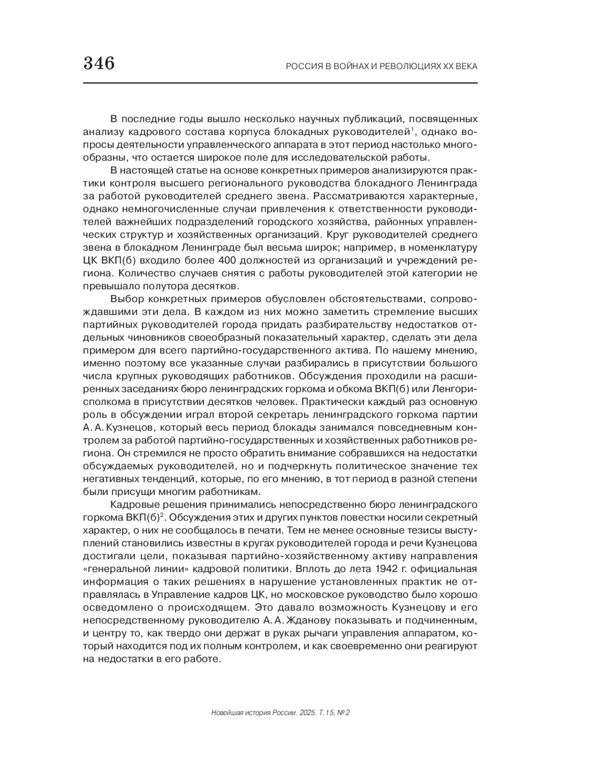 4. Болдовский К. А. Руководящие кадры блокадного Ленинграда в номенклатуре ЦК ВКП(б) // Новейшая история России. 2022. Т. 12, № 4. С. 840-852. EDN: RDTPUX