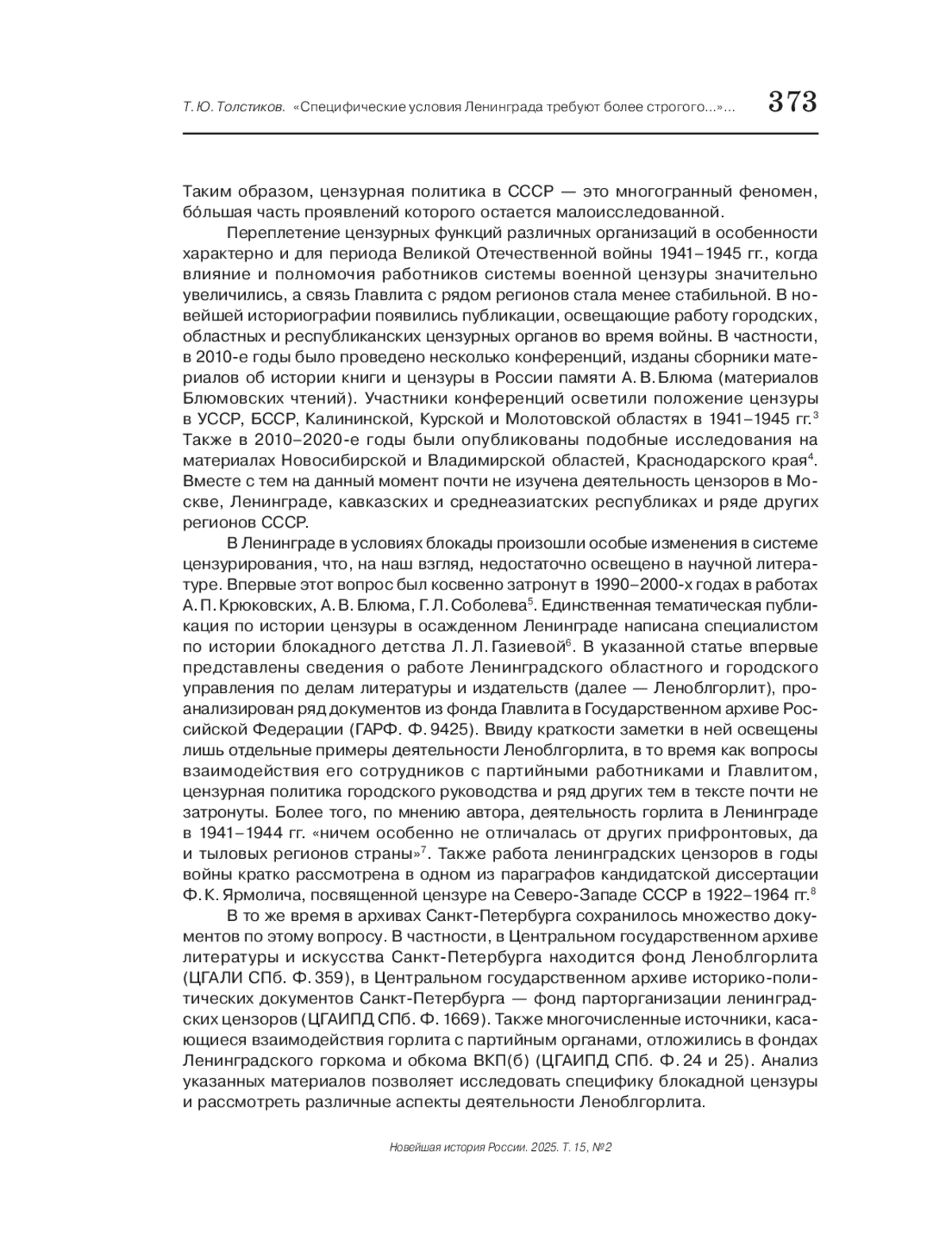 3. Блюм А. В. Как это делалось в Ленинграде. Цензура в годы оттепели, застоя и перестройки. 1953-1991. СПб., 2005.