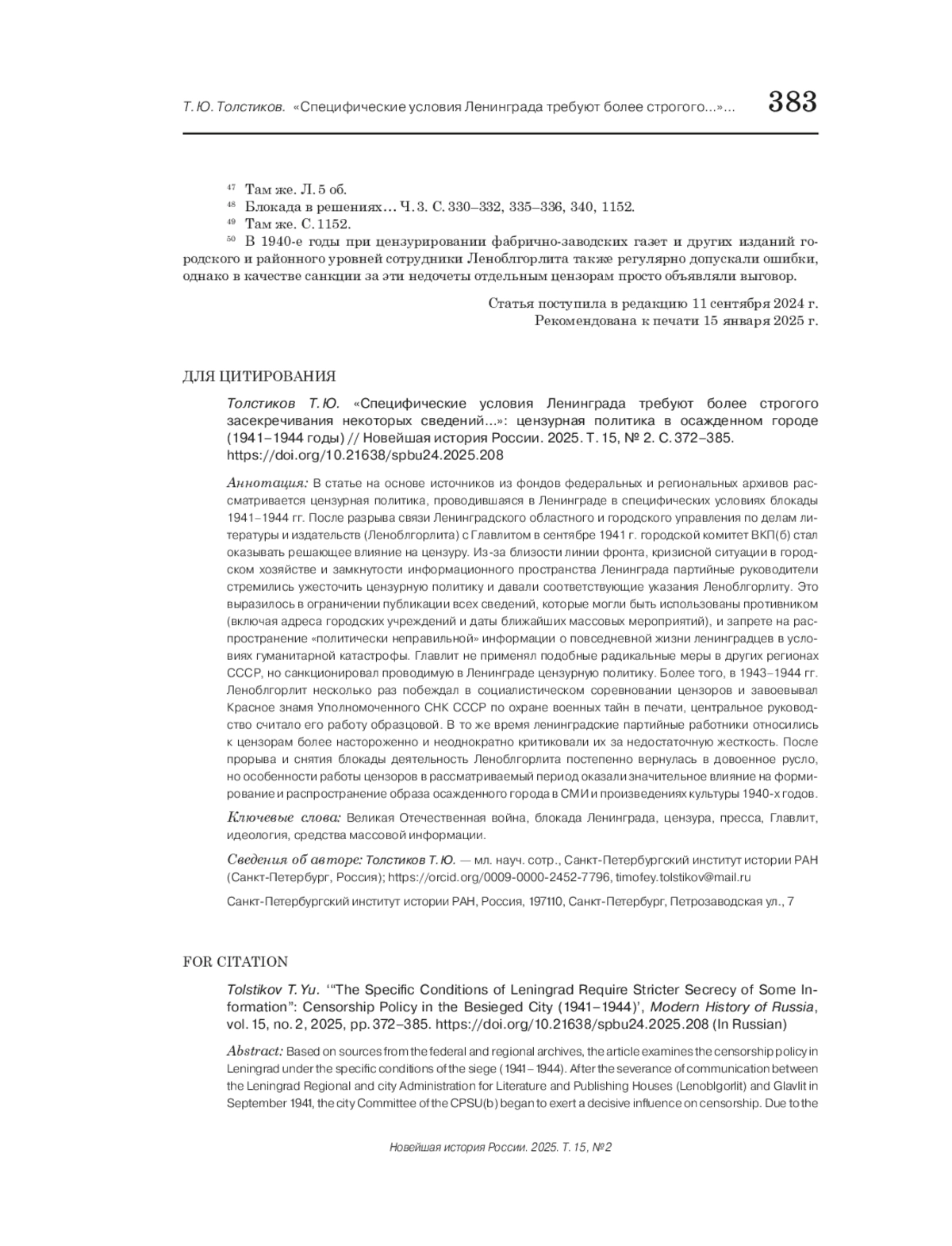 29. Пянкевич В. Л. “Люди жили слухами”: неформальное коммуникативное пространство блокадного Ленинграда. СПб., 2014. EDN: TJQGQN