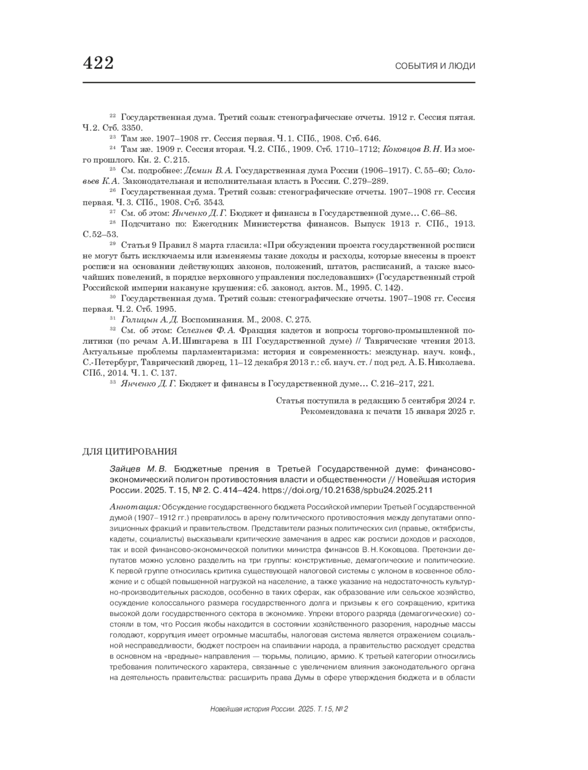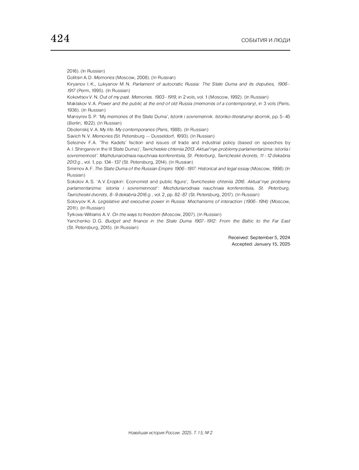 15. Коковцов В. Н. Из моего прошлого. Воспоминания. 1903-1919 гг.: в 2 кн. М., 1992. Кн. 1. С. 276.