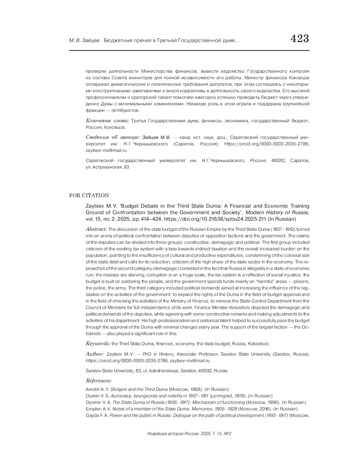 9. Гайда Ф. А. Власть и общественность в России: диалог о пути политического развития (1910-1917). М., 2016. EDN: YUKSRM