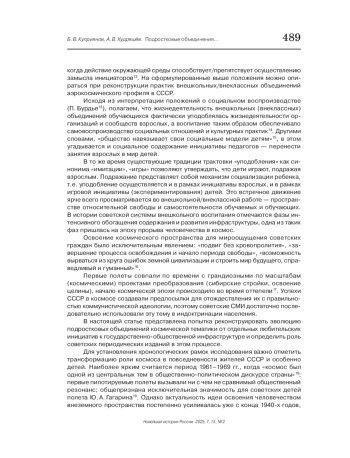Советское общество представляло собой достаточно сложное явление, которое плохо укладывается в линейные схемы. Эта характеристика в полной мере относится ко всей сфере народного просвещения и такого его сегмента, как внешкольная/внеклассная работа. В послевоенную эпоху, в годы всенародного воодушевления, вызванного освоением космического пространства, сформировалась новое явление — внешкольные/внеклассные подростковые объединения аэрокосмической направленности