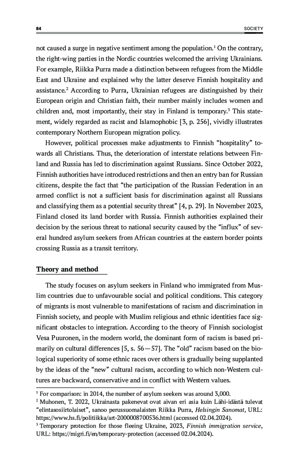 7. Ryynänen, S., Nortio, E., Varjonen, S. 2024, ‘They Actually do Get More Money’: Using Myths in Justifying Hierarchies in Ethnic Relations, Nordic Journal of Migration Research, vol. 14, № 3,. DOI: 10.33134/njmr.600