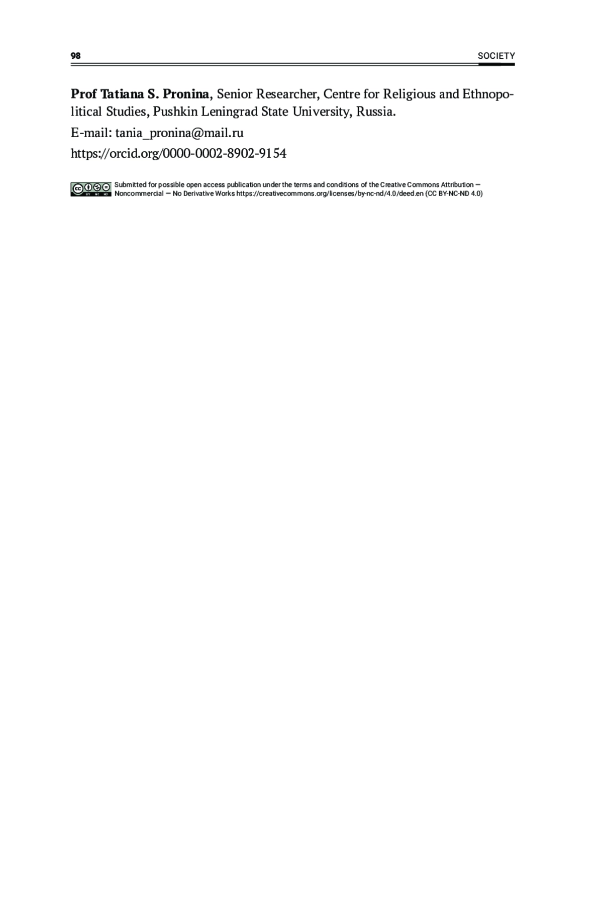 11. Pronina, T., Talalaeva, E. 2023, Migration and Religion: Main Areas of Research, State, Religion and Church in Russia and Worldwide, vol. 41, № 2, p. 7-29,. DOI: 10.22394/2073-7203-2023-41-2-7-29 EDN: FDDIVX