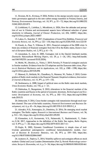 20. Deltuvaitė, V. 2016, Cross-border contagion risk transmission through stock markets channel: The case of the baltic countries, Financial Environment and Business Development, vol. 4, p. 43-54,. DOI: 10.1007/978-3-319-39919-5_4