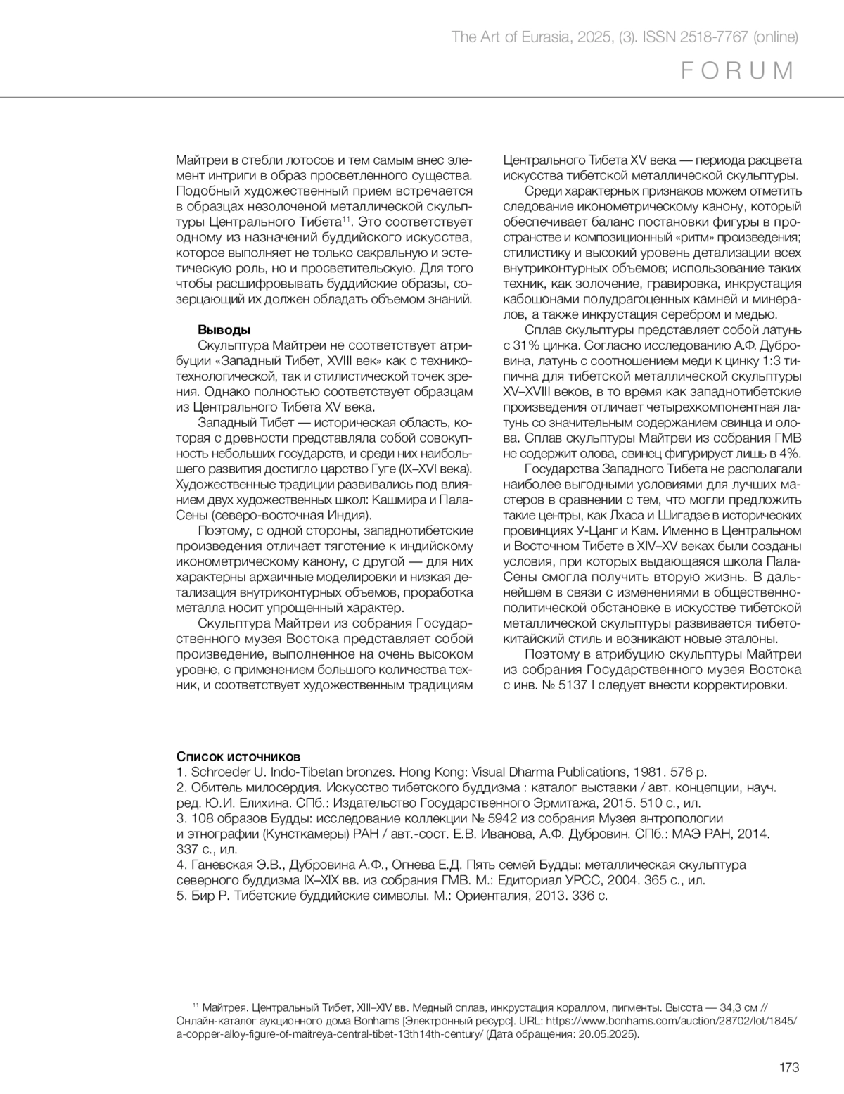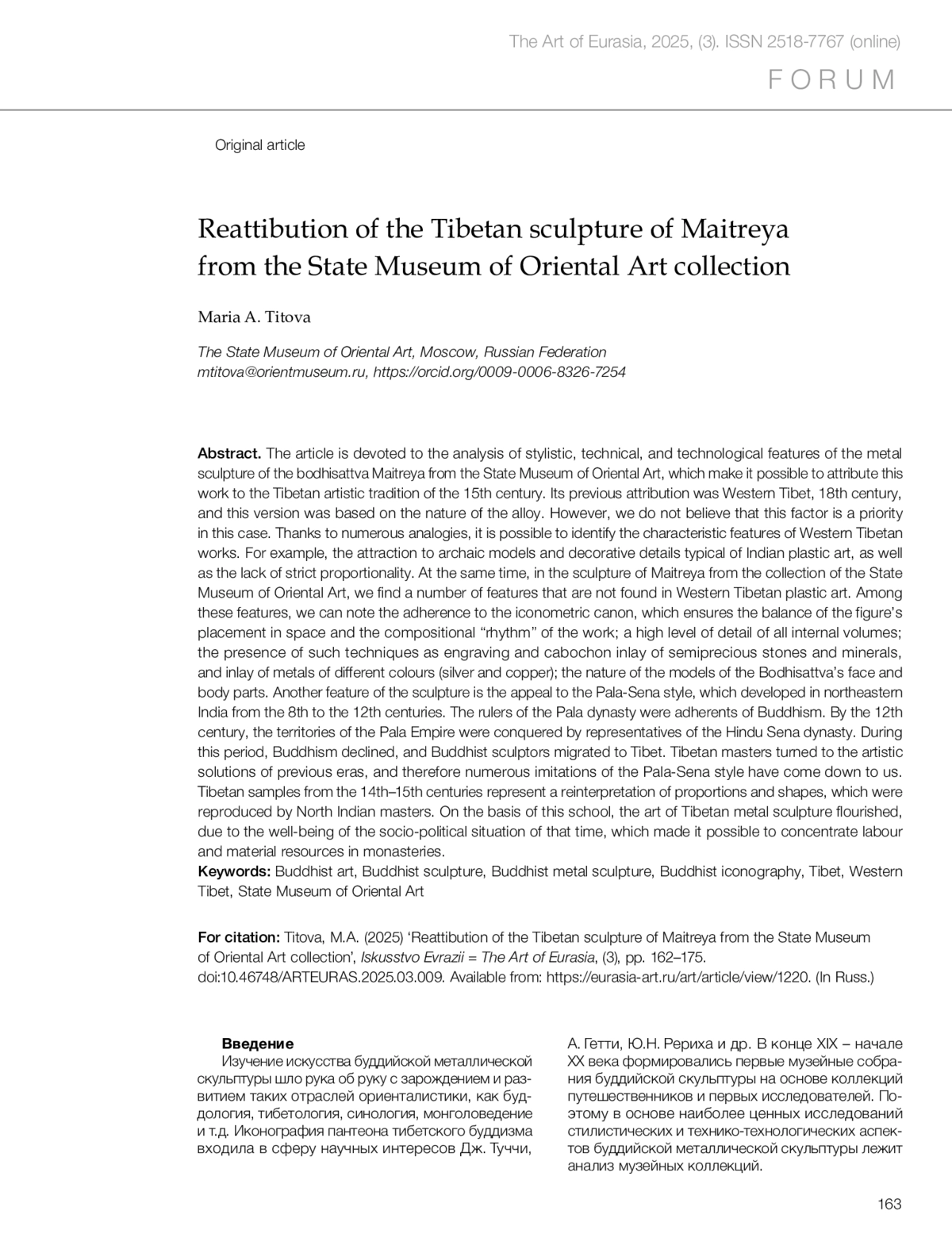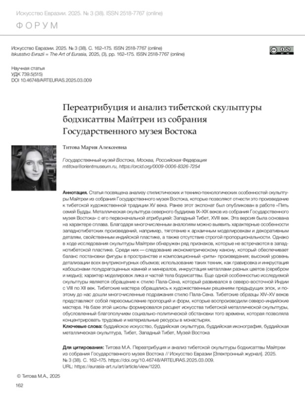 Титова М.А. Переатрибуция и анализ тибетской скульптуры бодхисаттвы Майтреи из собрания Государственного музея Востока // Искусство Евразии [Электронный журнал]. 2025.