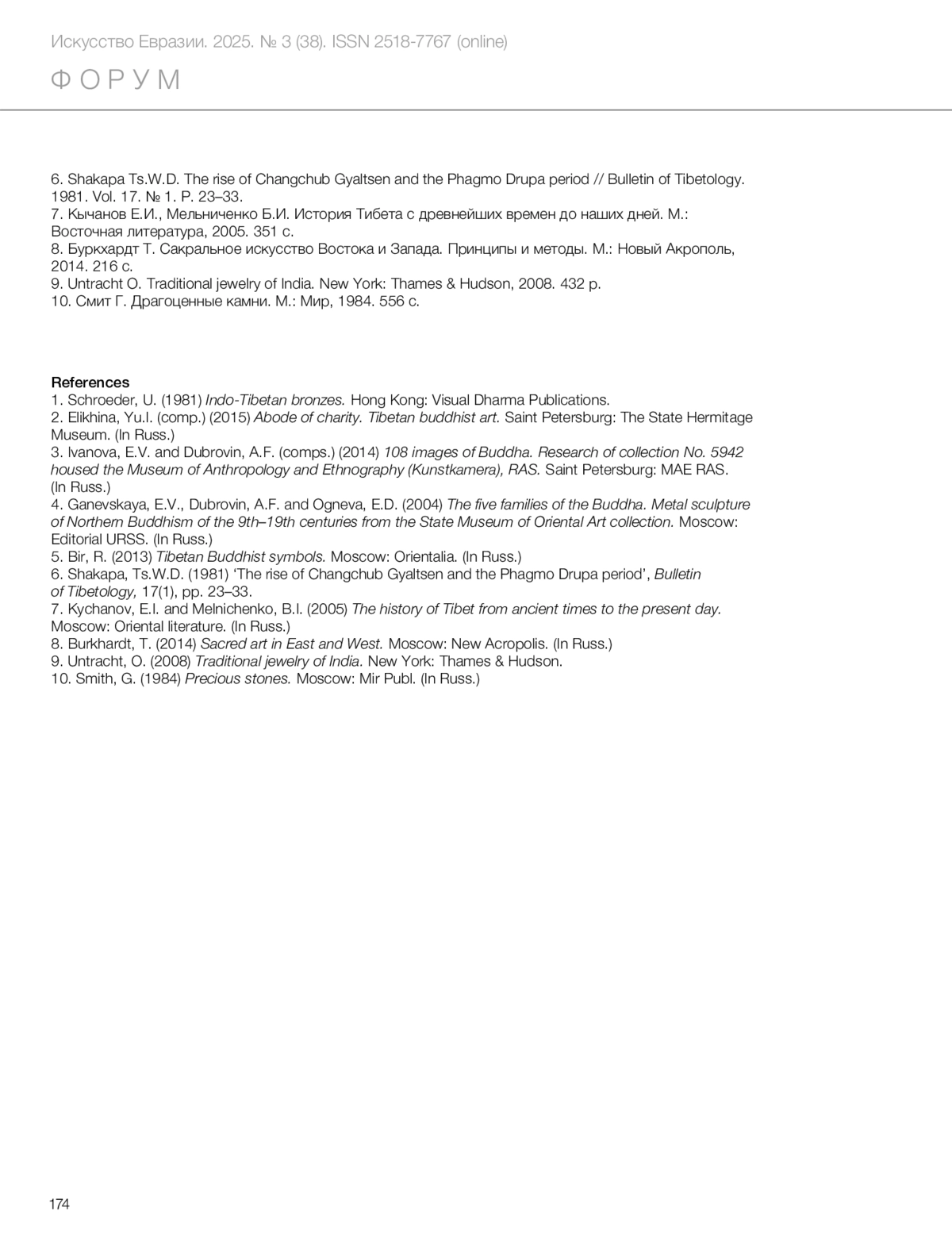 5. Bir, R. (2013) Tibetan Buddhist symbols. Moscow: Orientalia. (In Russ.)