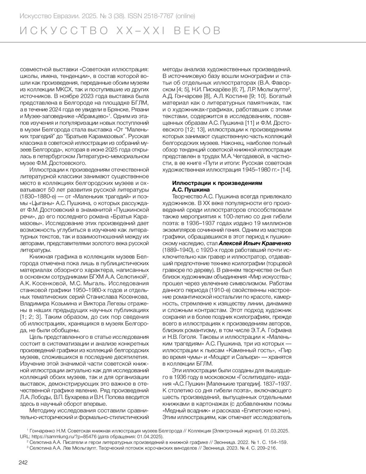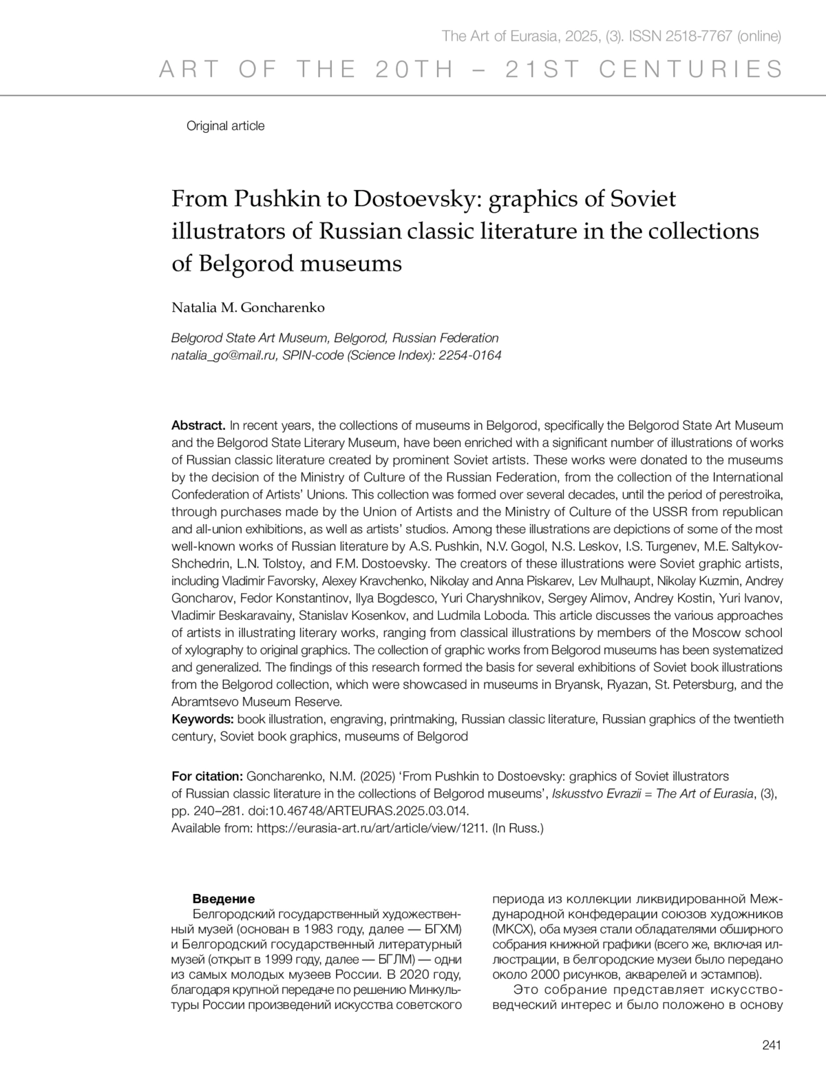 Гончаренко Н.М. От Пушкина до Достоевского: графика советских иллюстраторов русской классической литературы в собраниях белгородских музеев // Искусство Евразии