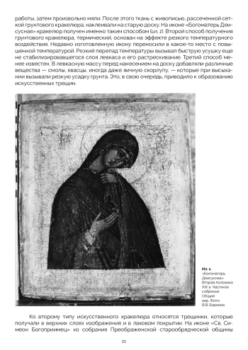 Статья посвящена рассмотрению основных приемов старообрядческой реставрации и имитации древних икон в XIX — начале XX в. на примере Мстёры и Невьянска. Художественное наследие этих иконописных центров наиболее активно изучалось на протяжении последних лет в Государственном научно-исследовательском институте реставрации. Главный акцент сделан на освещении технической стороны деятельности иконописцев-старинщиков, которые стали первыми реставраторами икон в России. Вначале анализируются основные приемы имитации древности на иконах у мстёричей. Описаны способы получения четырех различных типов искусственного кракелюра: 1) грунтового, 2) образованного в верхних слоях красочного слоя и лака, 3) нарисованного, 4) процарапанного острым металлическим инструментом. На конкретных примерах рассматриваются иные методы застаривания восстановленных участков изображения (набрызг краски, механические насечки, покрытие икон «старой» олифой и т. д.). Во второй части статьи описан характер старообрядческих реставрационных вмешательств на невьянских иконах. Делается вывод об ином характере этой деятельности в уральских мастерских: отсутствии практики имитации древности и состаривания икон, а также традиции их полного записывания. На горнозаводском Урале основная деятельность иконописцев-реставраторов в XIX — начале XX в. была направлена на очень деликатное поновление (частичное прописывание в тон авторской живописи) ранее созданных местных уральских икон. Стоит особенно подчеркнуть, что в настоящей публикации впервые обнародованы результаты микроскопного обследования ряда произведений из частных и музейных собраний, подвергшихся «починке» в мастерских указанных центров старообрядчества.