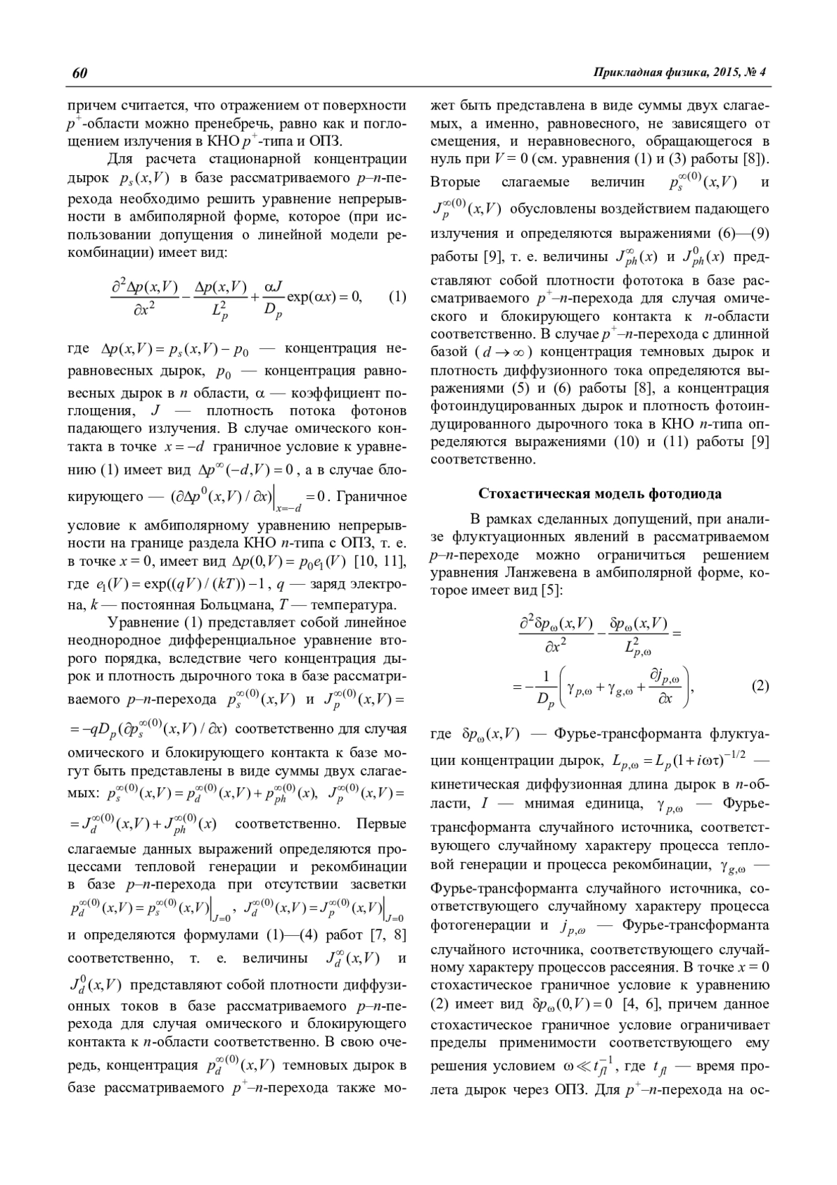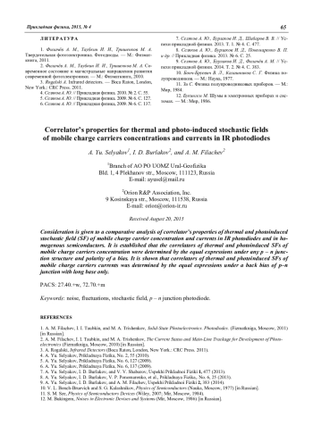 Селяков А. Ю., Бурлаков И. Д., Филачёв А. М. Свойства корреляторов тепловых и фотоиндуцированных случайных полей концентраций и токов подвижных носителей заряда в ИК-фотодиодах 59