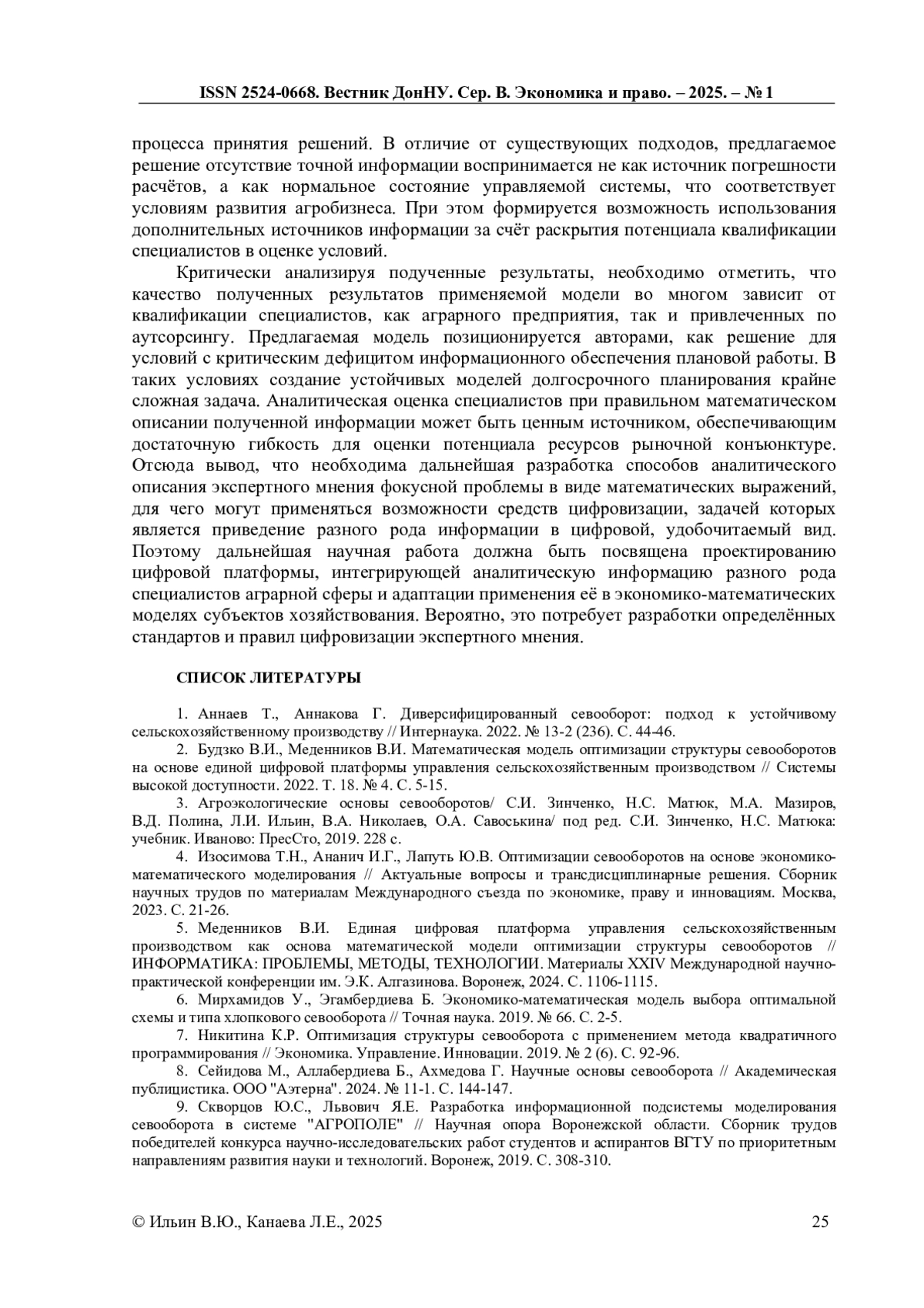 2. Будзко В.И., Меденников В.И. Математическая модель оптимизации структуры севооборотов на основе единой цифровой платформы управления сельскохозяйственным производством // Системы высокой доступности. 2022. Т. 18. № 4. С. 5-15. EDN: RPXYGA
