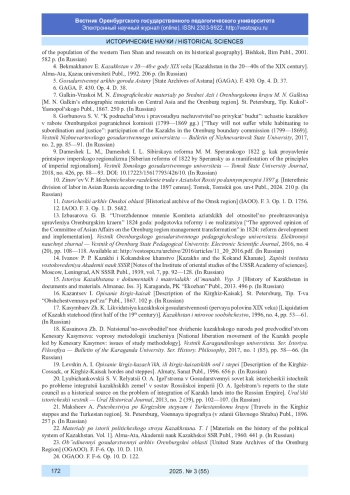 13. Избасарова Г. Б. “Утвержденное мнение Комитета азиатских дел относительно преобразования управления Оренбургским краем” 1824 года: подготовка реформы и ее реализация // Вестник Оренбургского государственного педагогического университета. Электронный научный журнал. 2016. № 4 (20). С. 108-118. URL: http://vestospu.ru/archive/2016/articles/11_20_2016.pdf. EDN: XEJHRJ