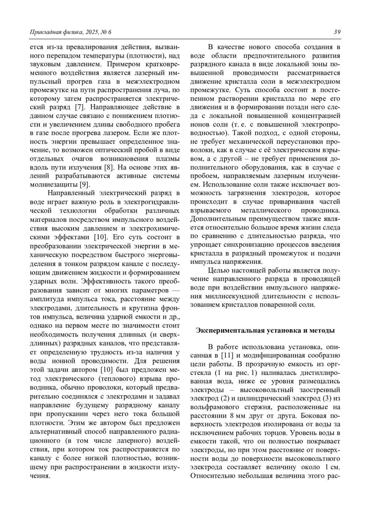 Направленный электрический разряд в воде по каналу с ионами соли NaCl Панов В. А., Савельев А. С., Куликов Ю. М. 38