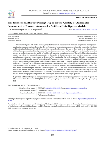 17. P. A. A., “Potentials of integrating generative artificial intelligence technologies into formative assessment processes in higher education,” Vestnik Majkopskogo Gosudarstvennogo Tehnologiceskogo Universiteta, vol. 16, no. 2, pp. 98-109, 2024, https://doi.org/10.47370/2078-1024-2024-16-2-98-109.