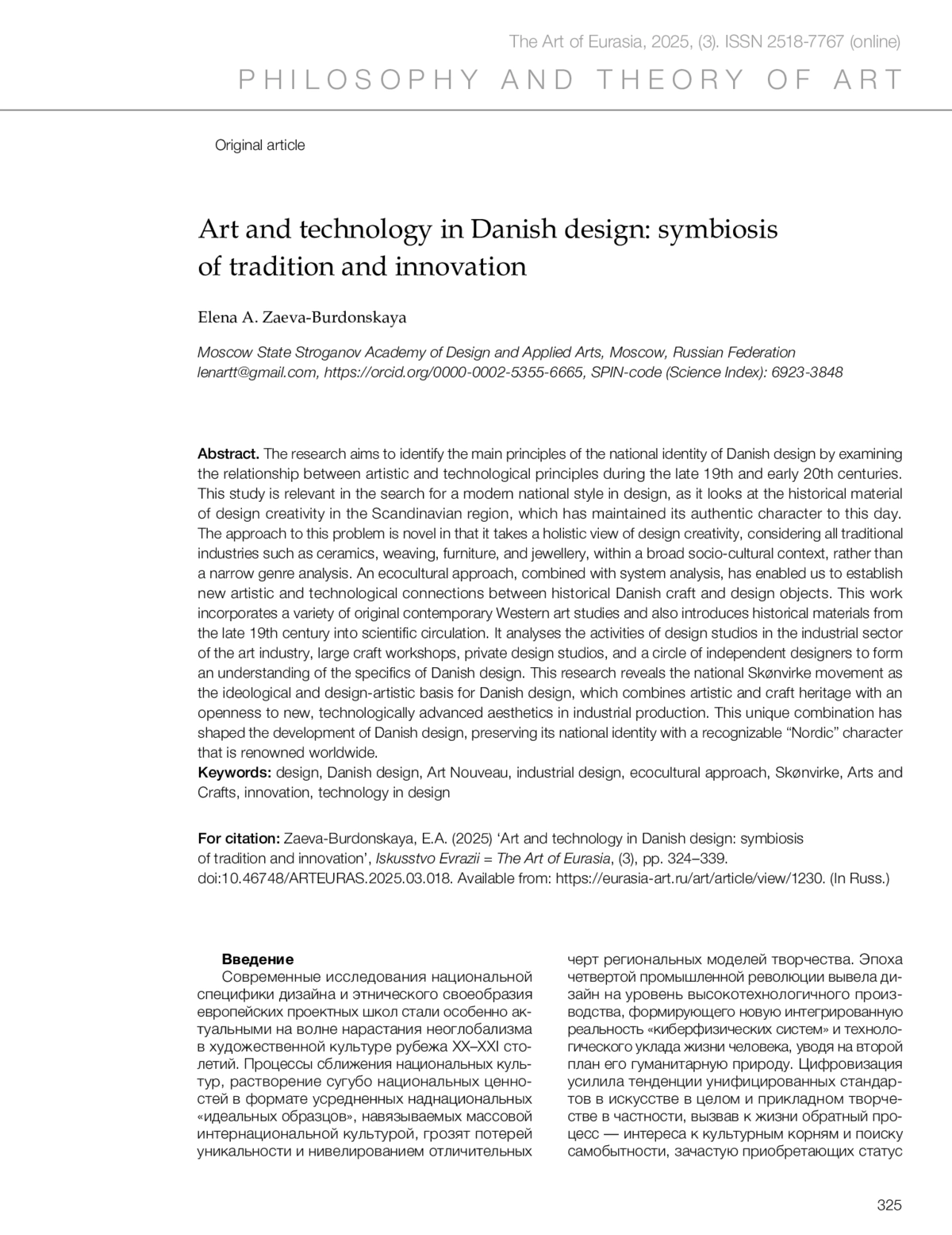 Заева-Бурдонская Е.А. Искусство и технологии в датском дизайне: симбиоз традиции и инновации // Искусство Евразии [Электронный журнал]. 2025. No 3 (38). С. 324–339.