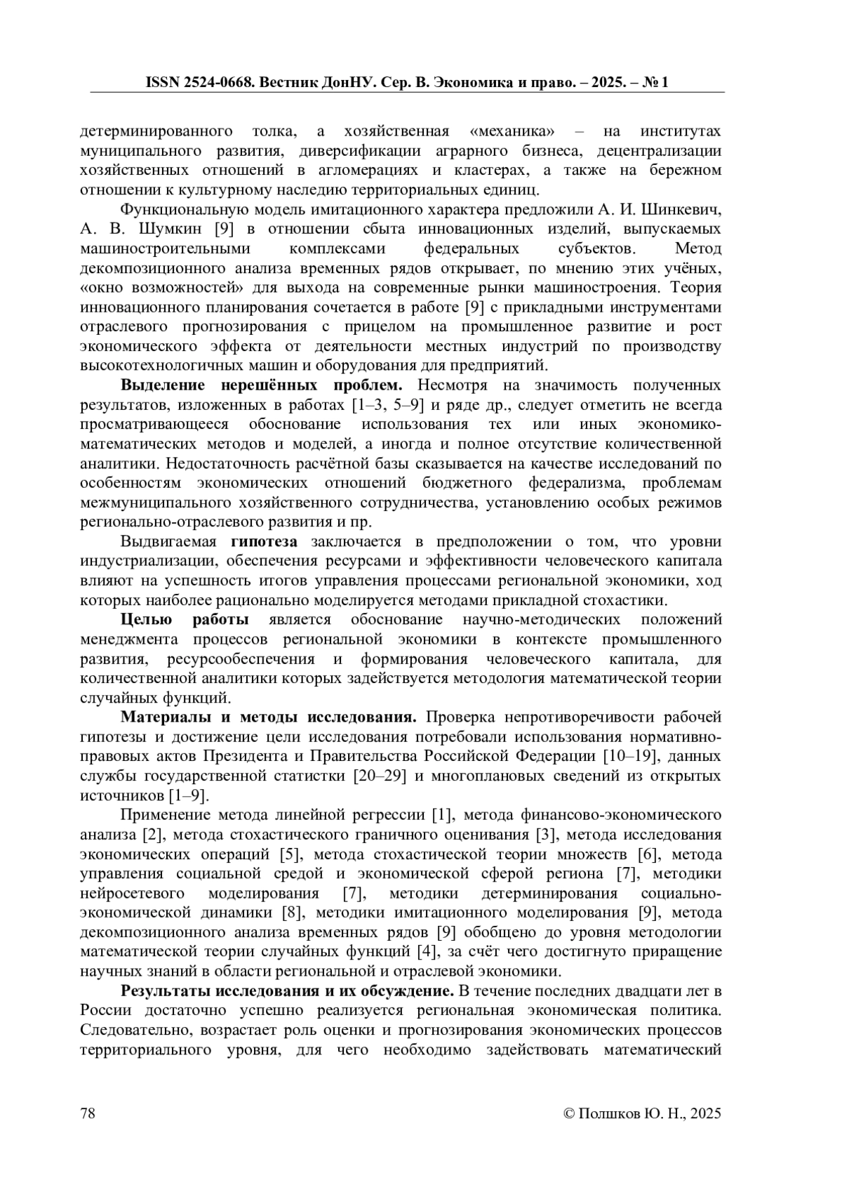 8. Шеломенцев А.Г. Модели территориального развития: в поиске эффективности [Текст] / А.Г. Шеломенцев, А.Н. Сёмин, К.С. Гончарова // ЭТАП: экономическая теория, анализ, практика. - 2024. - № 5. - С. 7-25. DOI: 10.24412/2071-6435-2024-5-7-25 EDN: HQYHEI