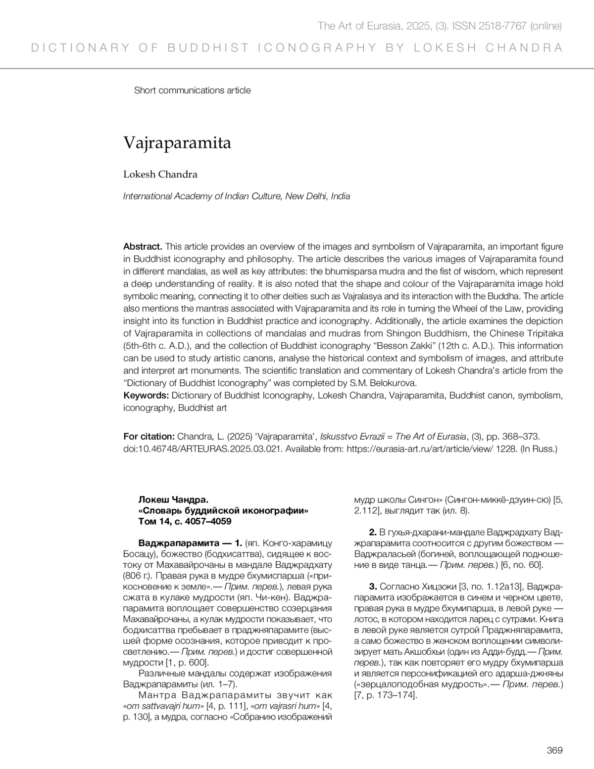 Чандра Л. Ваджрапарамита // Искусство Евразии [Электронный журнал]. 2025. No 3 (38). С. 368–373. https://doi.org/10.46748/ARTEURAS.2025.03.021.