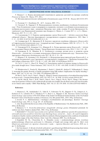19. Misiukeviсius E., Frercks B., Siksnianiene J., Kacki Z., Gebala M., Akulyte P., Trilikauskaite E., Stanys V. Assessing the genetic diversity of daylily germplasm using SSR markers: Implications for daylily breeding // Plants. 2023. Vol. 12, N 9. Art. 1752. DOI: 10.3390/plants12091752 EDN: ALJOEZ
