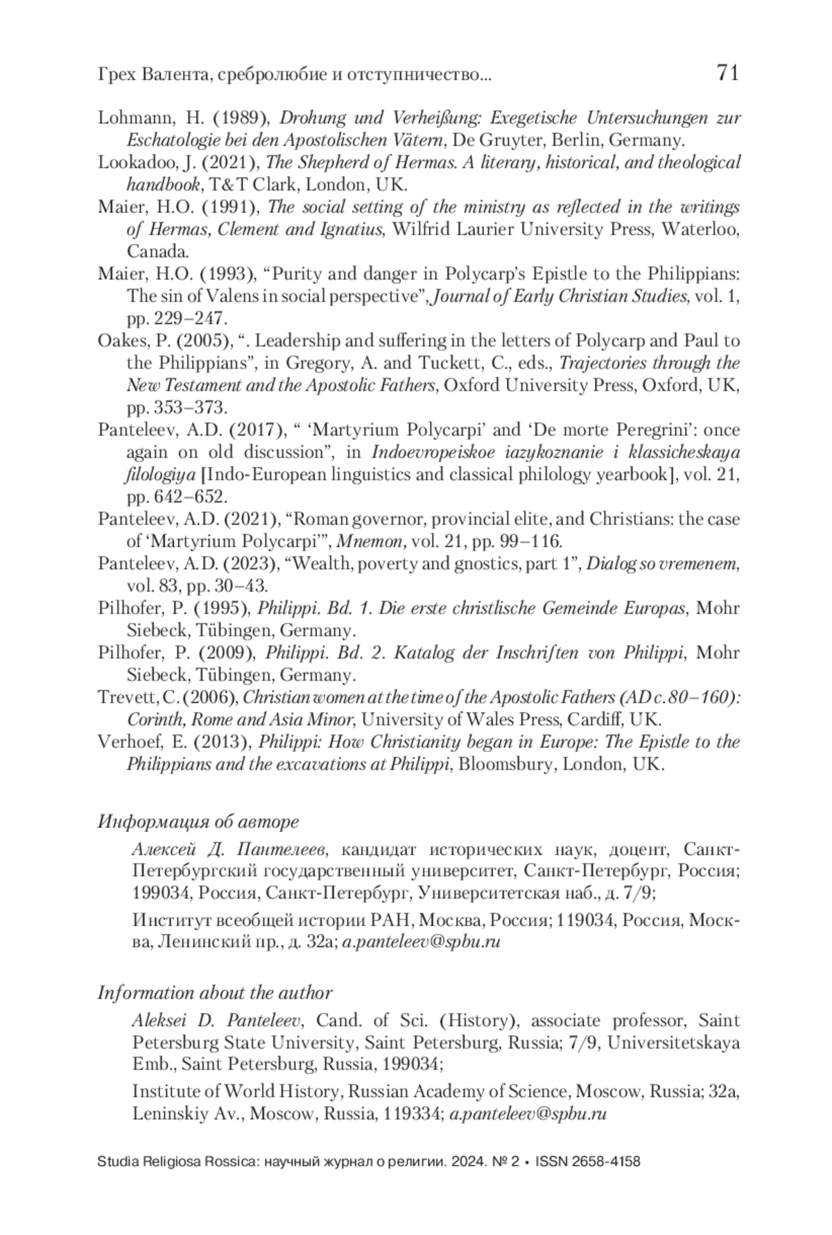 14. Linderborg 2023 - Linderborg O. Sin, heresy and righteousness in Polycarp’s letter to the Philippians // Zeitschrift für Antikes Christentum / Journal of Ancient Christianity. 2023. Bd. 27. P. 211-225.