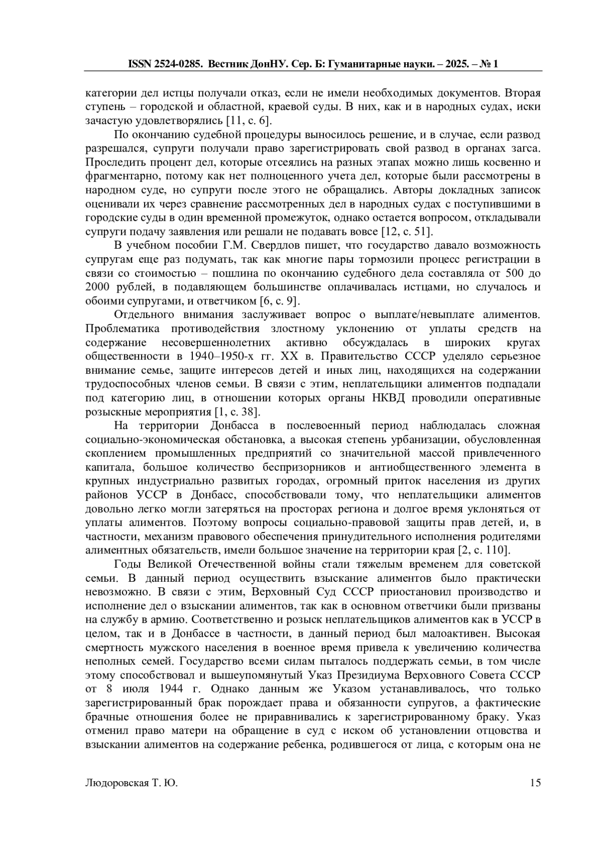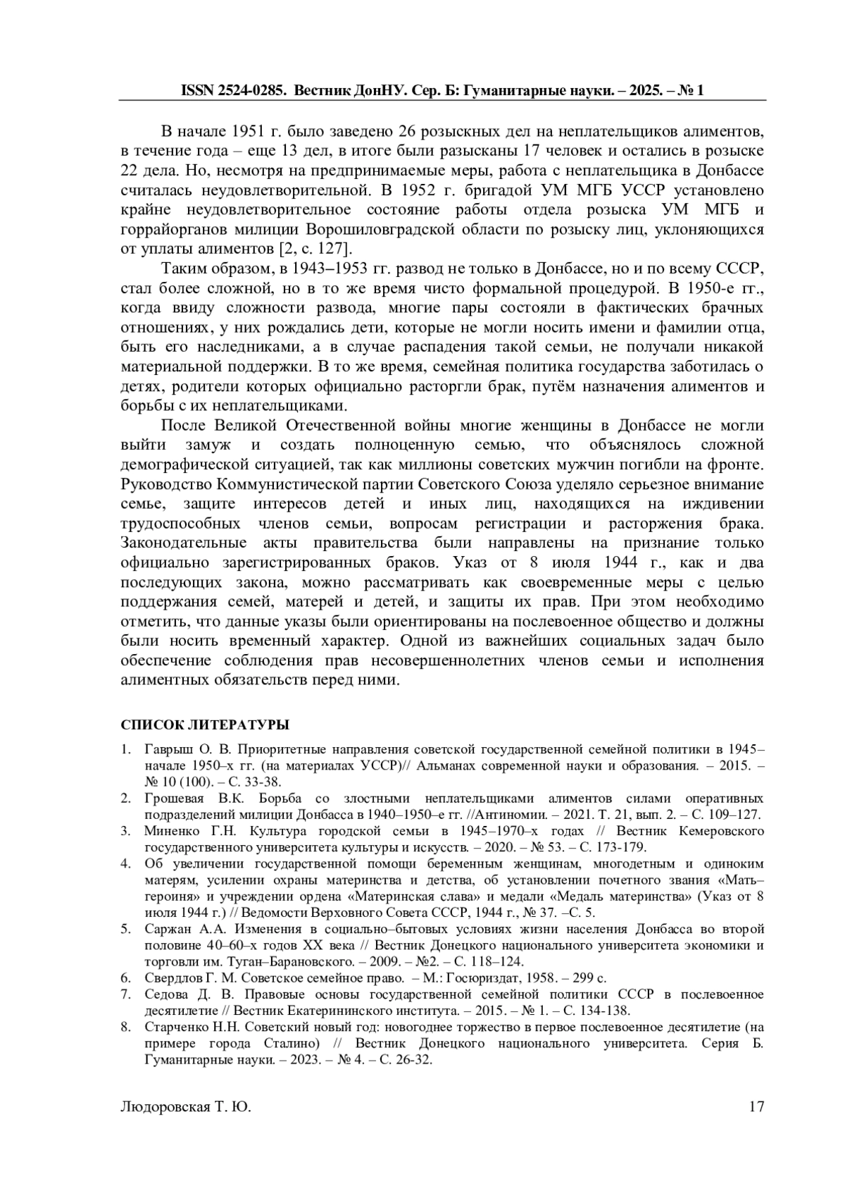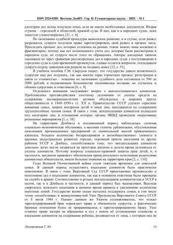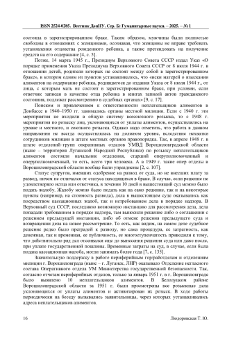 2. Грошевая В.К. Борьба со злостными неплательщиками алиментов силами оперативных подразделений милиции Донбасса в 1940-1950-е гг. //Антиномии. - 2021. Т. 21, вып. 2. - С. 109-127. EDN: OVJJWU
