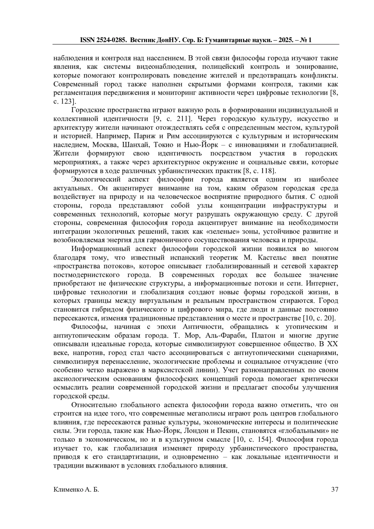 7. Сunningham F. Urban Philosophy // Proceedings of the XXII World Congress of Philosophy. - 2008. - No. 50. - P. 117-123.