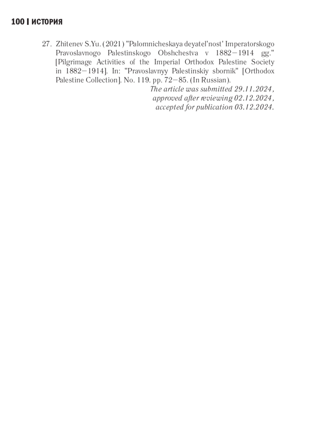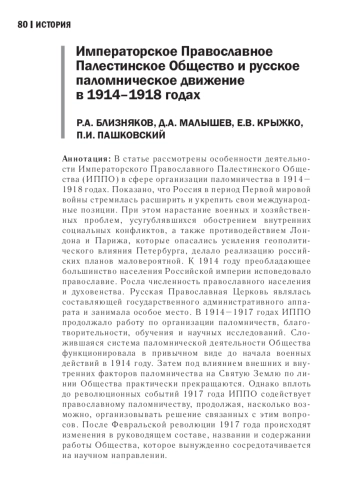 12. Житенёв С. Ю. Паломническая деятельность Императорского Православного Палестинского Общества в 1882-1914 гг. // Православный Палестинский сборник. 2021. № 119. С. 72-85. EDN: SFIDSJ