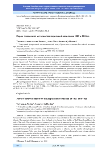 15. Субботина А. М. История евреев Вятской губернии в документах Центрального государственного архива Кировской области // Вестник Марийского государственного университета. Сер. Исторические науки. Юридические науки. 2024. Т. 10, № 3. С. 240-247. DOI: 10.30914/2411-3522-2024-10-3-240-247