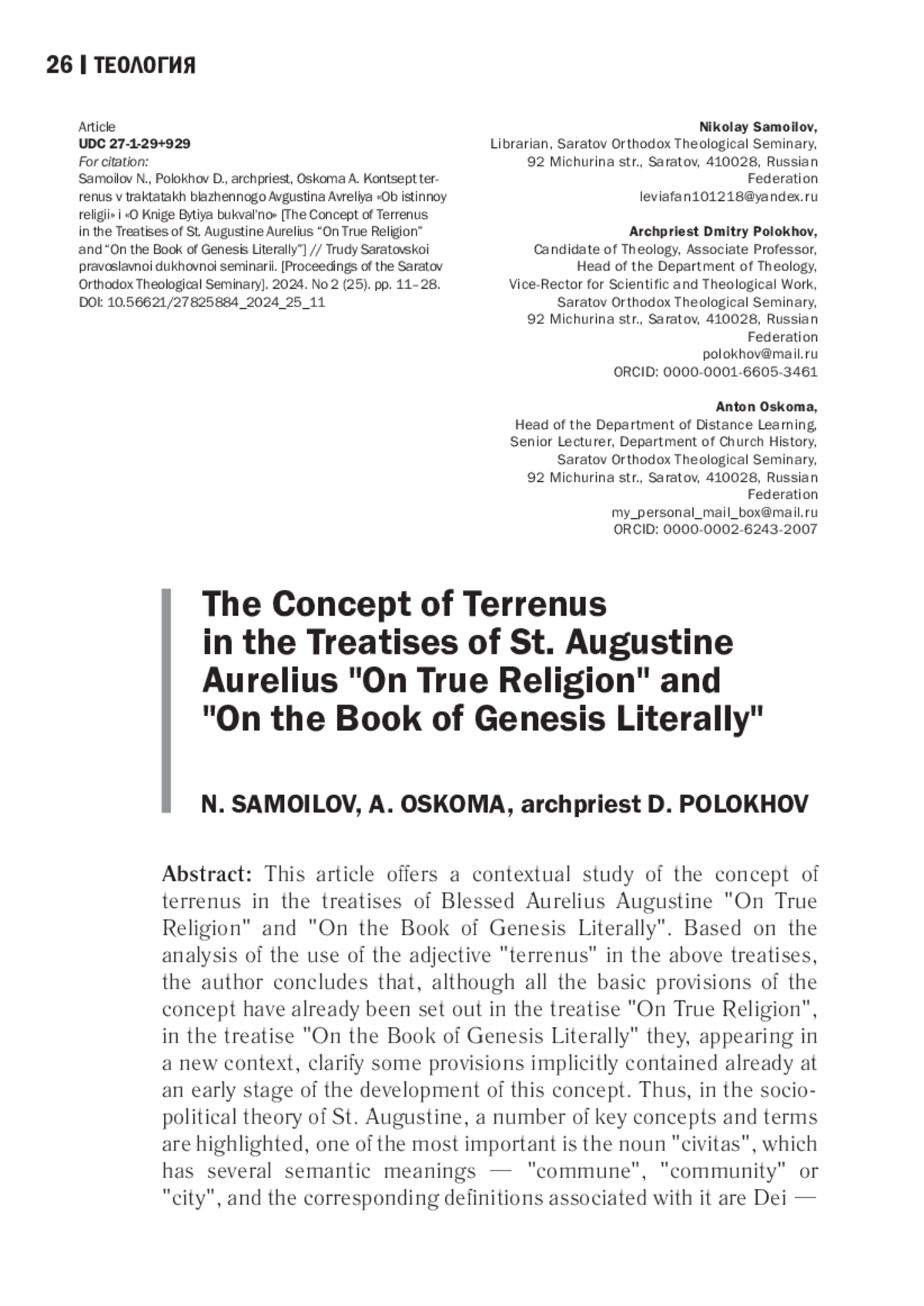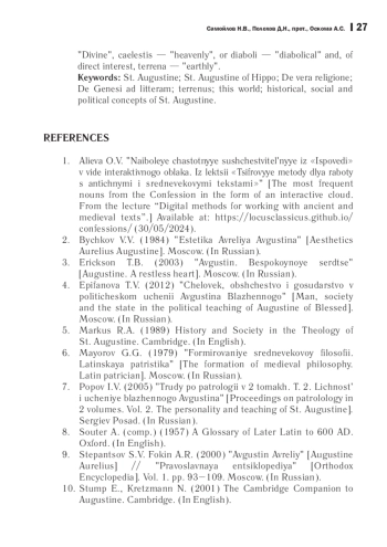 9. Степанцов С. В., Фокин А. Р. Августин Аврелий // Православная энциклопедия. Т. 1: А-Ал. / под общ. ред. Патриарха Московского и всея Руси Алексия II. М.: ЦНЦ Православная энциклопедия, 2000. C. 93-109.