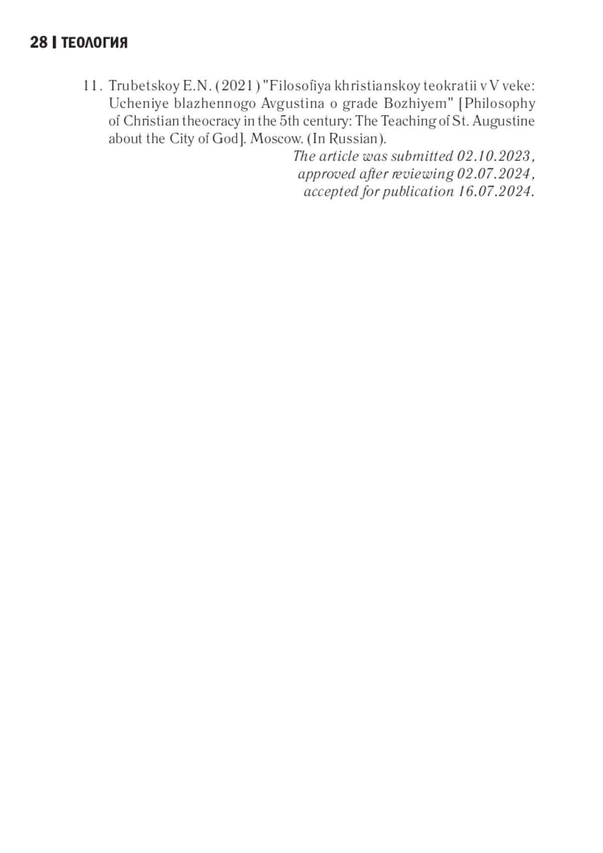 10. Трубецкой Е. Н. Философия христианской теократии в V веке: Учение блаженного Августина о граде Божием. М.: Либроком, 2021. 152 с.