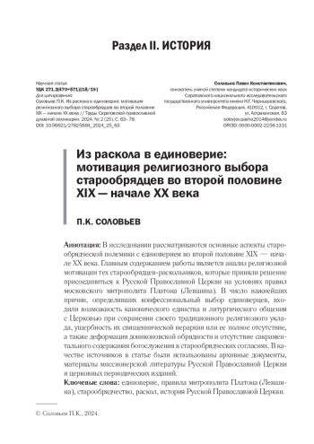 20. Соловьев П. К. “Раскольники криволуцкие больше всех употребляют насилия…”: о становлении единоверия в Николаевском уезде Самарской губернии (1850-1860-е годы) // Известия Саратовского университета: Новая серия. Серия История. Международные отношения. 2022. № 22. С. 234-242. EDN: SMSLYW