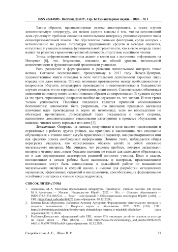 7. Фирсова Татьяна Геннадьевна Аксиологическая концепция читательского развития младших школьников // Изв. Сарат. ун-та Нов. сер. Сер. Акмеология образования. Психология развития. - 2014. - №3. - URL: https://cyberleninka.ru/article/n/aksiologicheskaya-kontseptsiya-chitatelskogo- razvitiya-mladshih-shkolnikov (дата обращения: 8.12.2024).