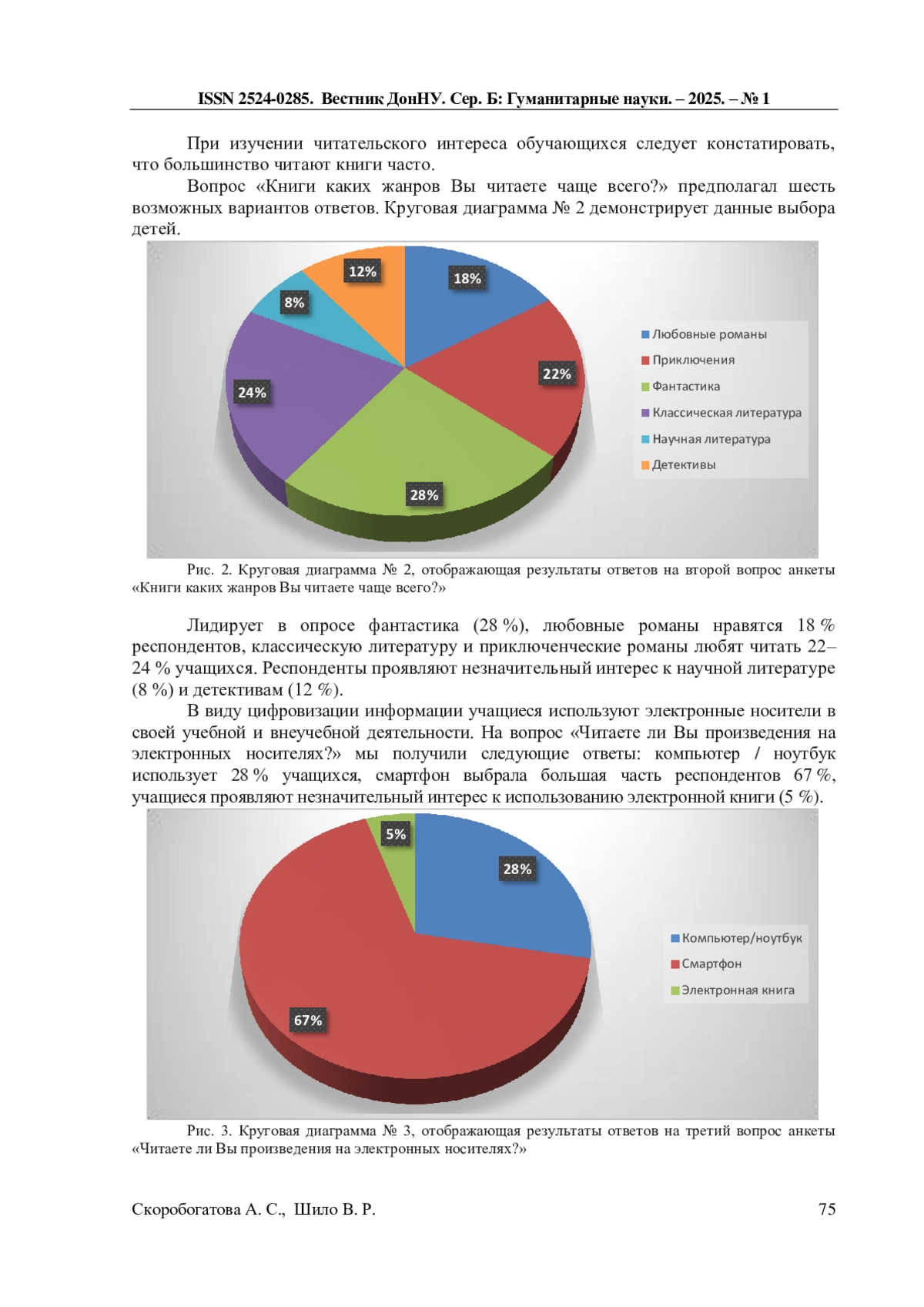 Статья посвящена вопросу, связанному со снижением читательского интереса у учеников среднего звена общеобразовательной школы города Севастополя. Авторы предлагают краткий обзор понятия «читательский интерес». В работе представлен графический анализ проведенного анкетирования причин снижения читательского интереса у школьников 5-9 классов и предложены пути к повышению их мотивации к чтению. Материалы статьи в дальнейшем могут быть использованы для разработки методических материалов и эффективных стратегий, способствующих формированию устойчивого интереса к чтению.