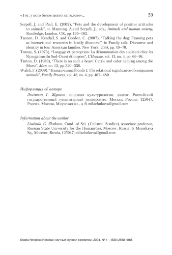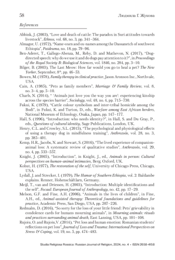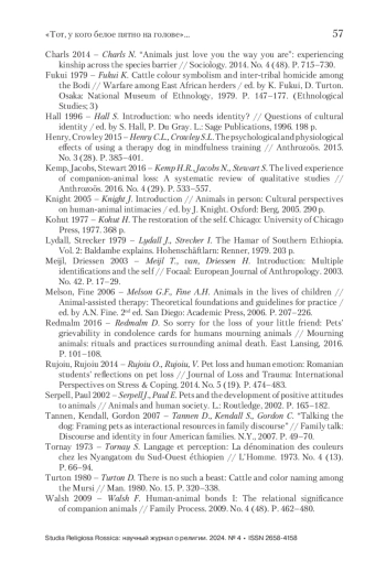 7. Charls 2014 - Charls N. “Animals just love you the way you are”: experiencing kinship across the species barrier // Sociology. 2014. No. 4 (48). P. 715-730.