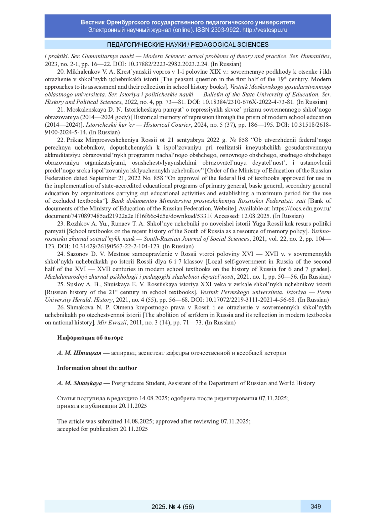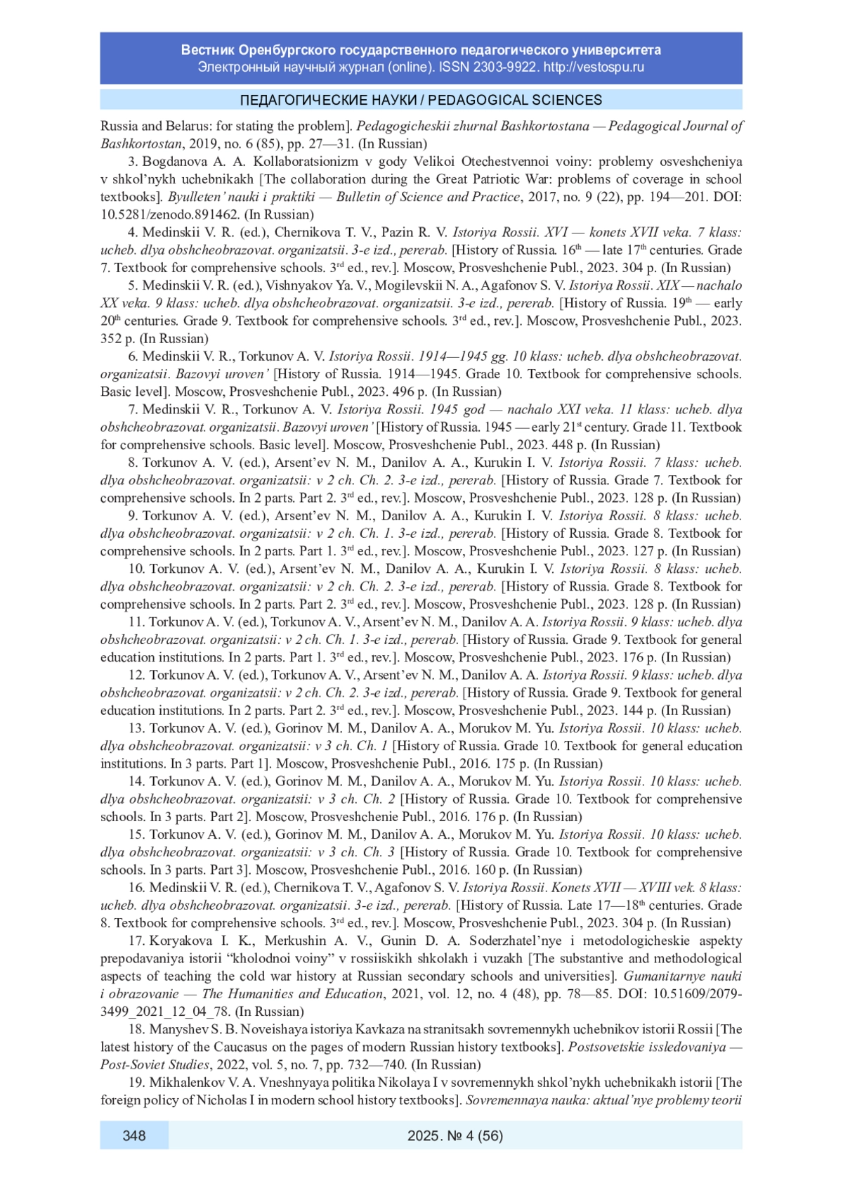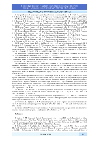 25. Суслов А. Б., Шуйская Е. В. Российская история XXI века в зеркале школьных учебников истории // Вестник Пермского университета. История. 2021. № 4 (55). С. 56-68. DOI: 10.17072/2219-3111-2021-4-56-68 EDN: JZSMZU