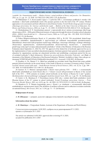 21. Москаленская Д. Н. Историческая память о репрессиях сквозь призму современного школьного образования (2014-2024 годы) // Исторический курьер. 2024. № 5 (37). С. 186-195. DOI: 10.31518/2618-9100-2024-5-14 EDN: DTXDII