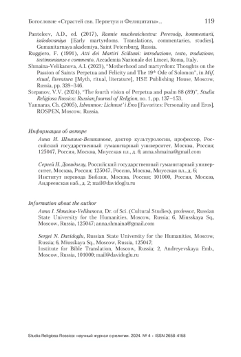 8. Степанов 2024 - Степанов В.В. Псалом 88 (89) в четвертом видении Перпетуи // Studia Religiosa Rossica: научный журнал о религии. 2024. № 1. С. 137-153.