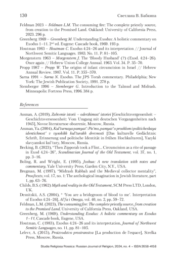 10. Houtman 1983 - Houtman C. Exodus 4:24-26 and its interpretation // Journal of Northwest Semitic Languages. 1983. No. 11. Р. 81-105.