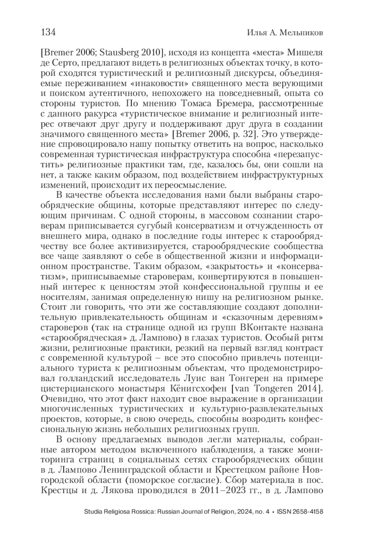 6. Bremer 2006 - Bremer T. Sacred spaces and tourist places // Tourism, religion and spiritual journeys. L., 2006. P. 25-35.