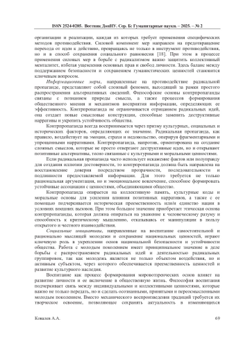 2. Бизина М.Ю. Сравнительный анализ понятия “радикализм” с правовой и общественной точек зрения в Российской Федерации и странах дальнего зарубежья в новой цифровой реальности // Вестник Томского государственного университета. Философия. Социология. Политология. - 2021. - № 63. - С. 153-161. Х/63/15. DOI: 10.17223/1998863 EDN: XACWDF