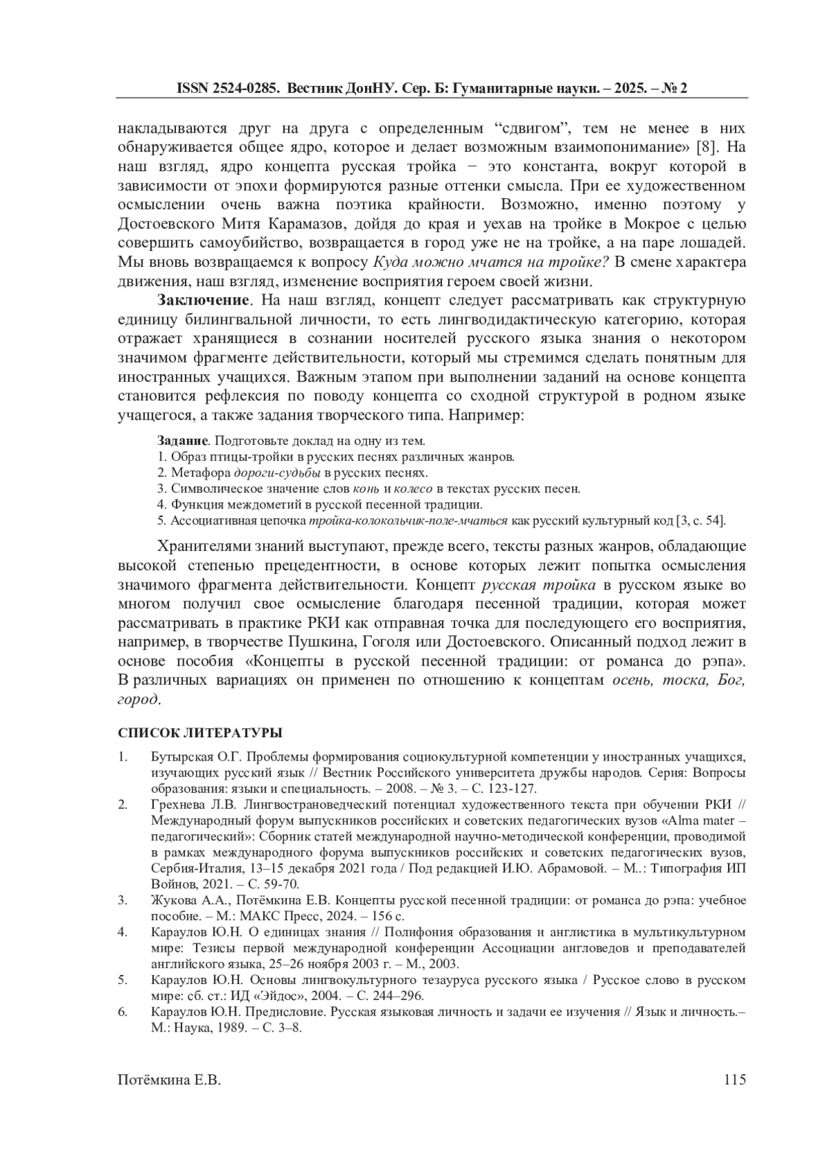 3. Жукова А.А., Потёмкина Е.В. Концепты русской песенной традиции: от романса до рэпа: учебное пособие. - М.: МАКС Пресс, 2024. - 156 с. EDN: GKIMDS