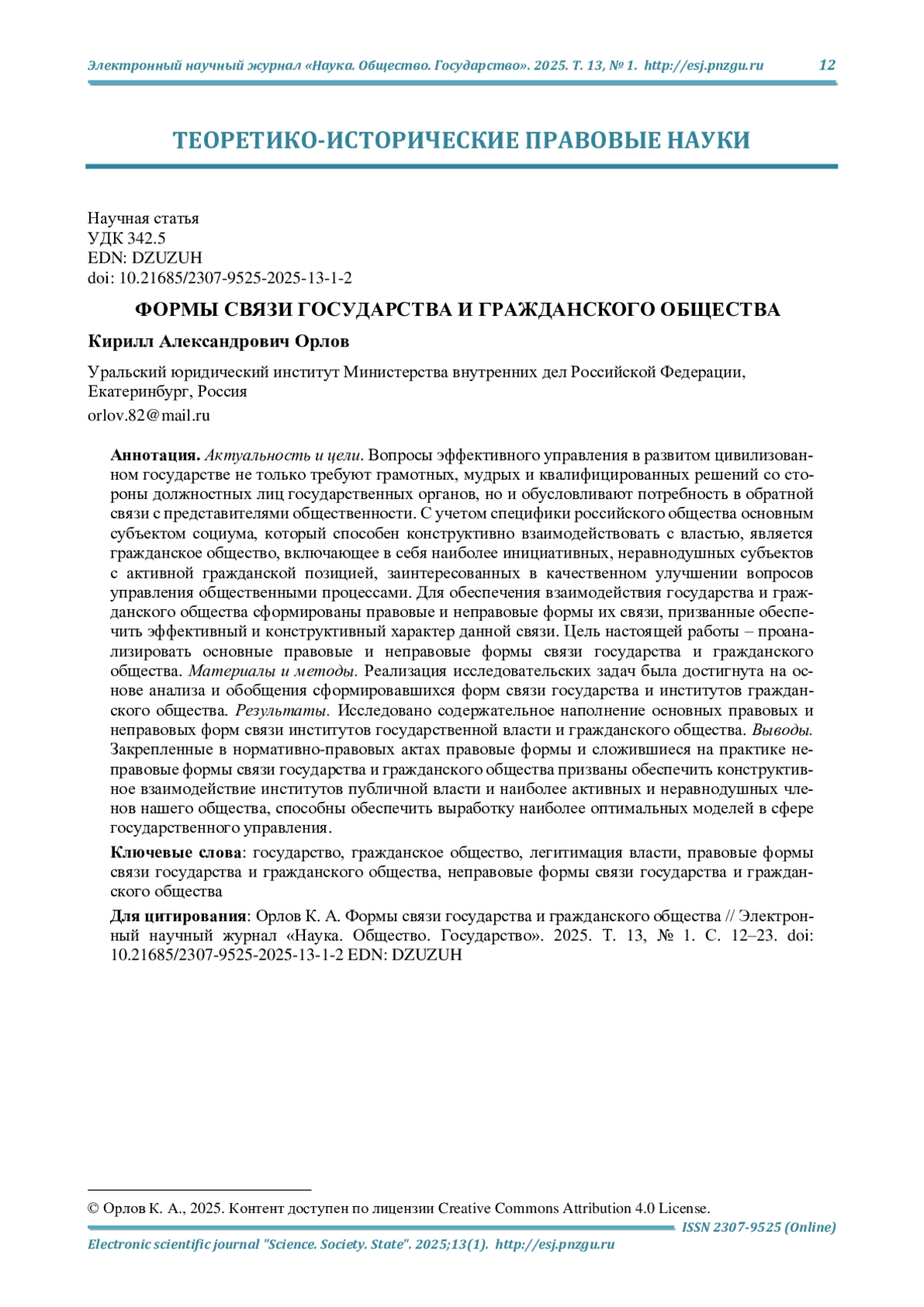 Результаты. Исследовано содержательное наполнение основных правовых и неправовых форм связи институтов государственной власти и гражданского общества.