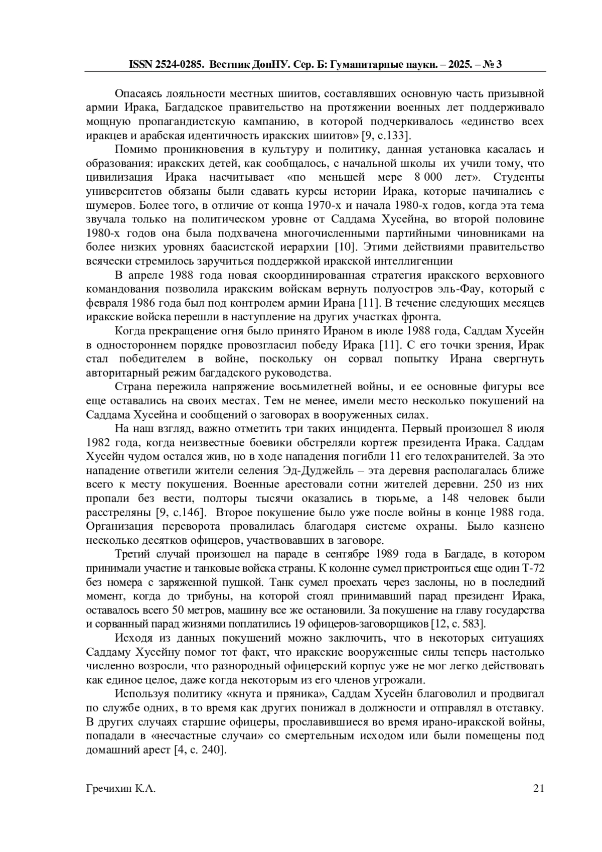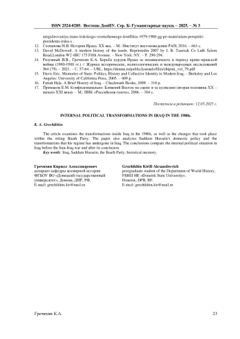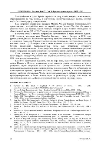 14. Разумный В.В., Гречихин К.А. Борьба курдов Ирака за независимость в период ирано-иракской войны (1980-1988 гг.) // Журнал исторических, политологических и международных исследований №4 (79). - 2021. - С. 57-64. - URL: https://donnu.ru/public/journals/files/zhipmi_vol_79.pdf.